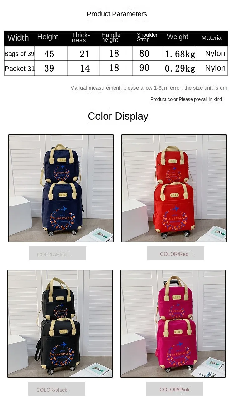 Trolley Bag Set para mulheres, mala impermeável, carrinho de viagem com rodas, moda